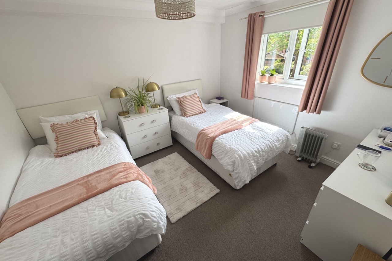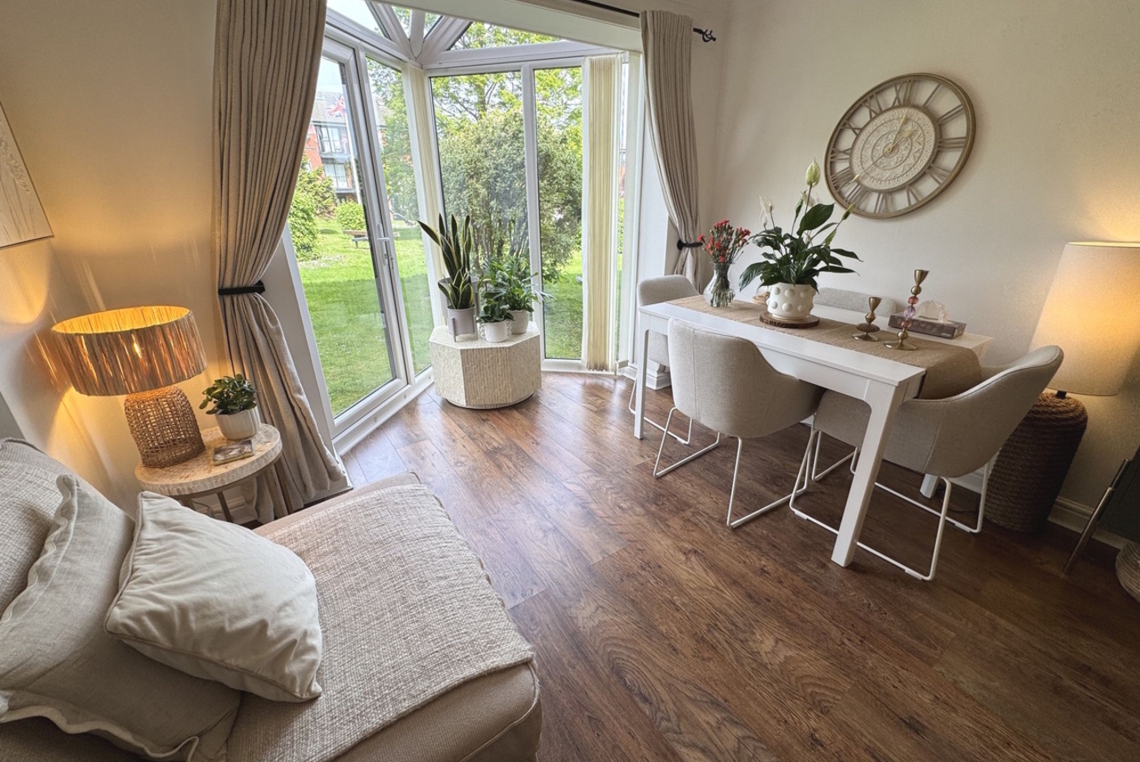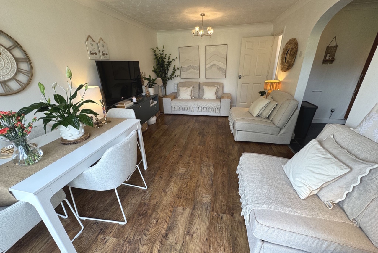 Glazed door from the Living Room provides access to the maintained communal garden areas. Flagged patio area.